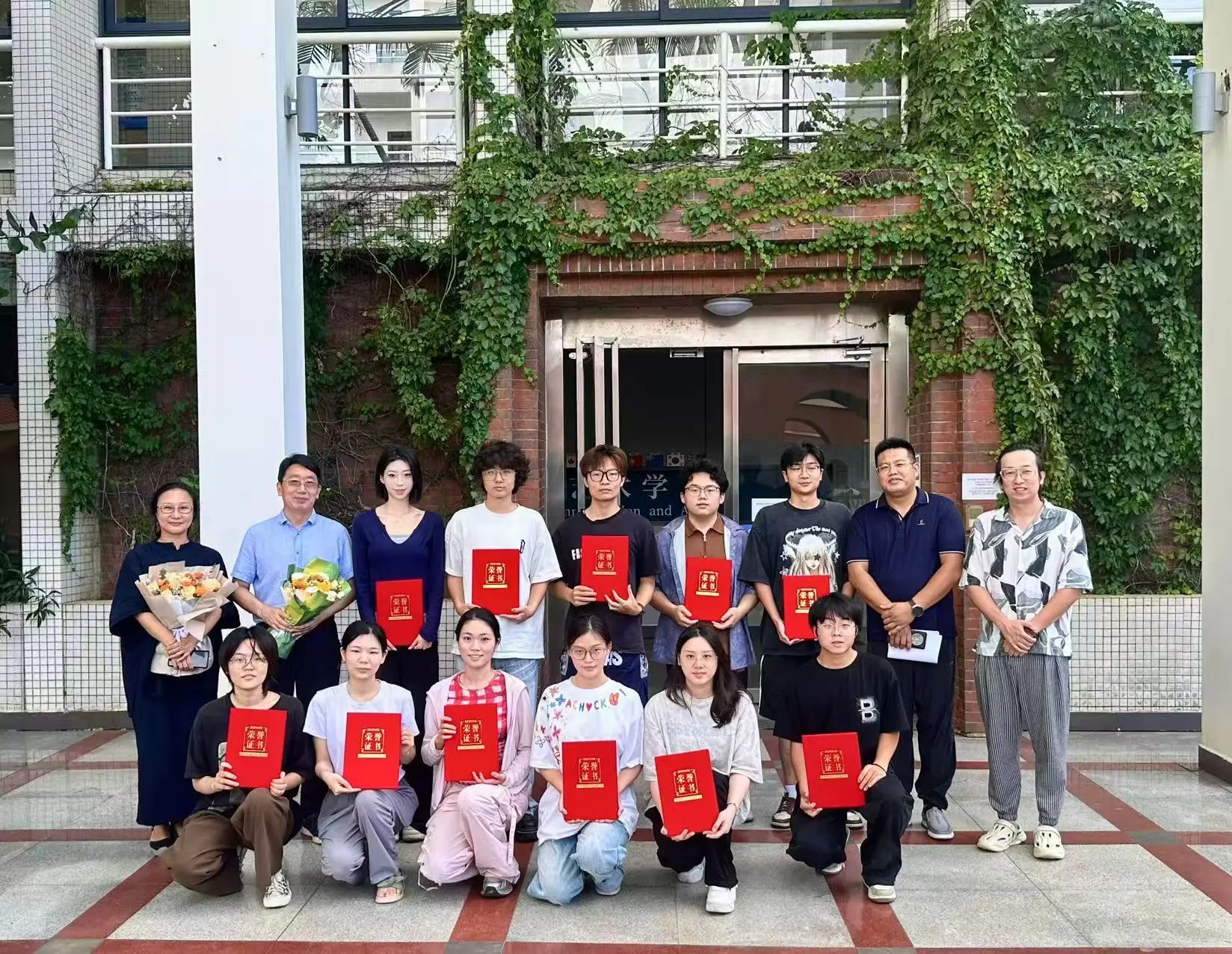 学生代表给学院鲜花致谢并合影留念