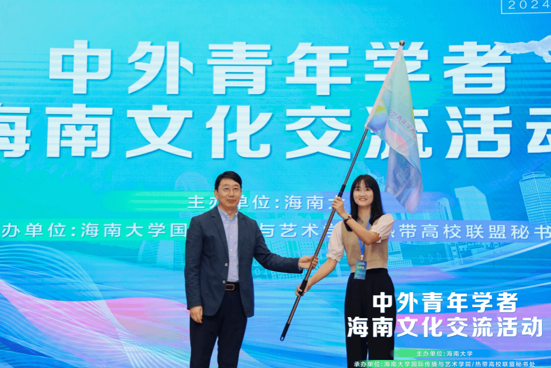 院长郑立波教授向学生代表授旗,标志着中外青年学者海南文化交流活动正式启幕。在为期四天的活动中,代表团将参访海南省博物馆、民族博物馆、非遗展示中心,体验海南历史与文化遗产;在黎族村寨体验扎染技艺、徒步五指山,感受热带生态与人文风情;深入疍家渔村,探访疍家博物馆,亲身感受疍家渔民的独特生活方式。丰富多样的行程安排,将使代表团成员更加切身体验到海南独特的传统文化、热带雨林风光、民俗民风等,让青年学者们能够真切地感受到海南自然之美、文化之韵、生活之真以及自由贸易港的蓬勃活力,促进中外文化的交流互鉴和中外人民的友好往来。