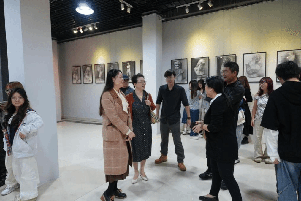 美术系教学成果展在美术馆展厅启幕。展览共分三场,每场时间为2周。首场展览以2024级美术系石膏像素描教学为主题,主要展现作品画面的构图、造型、结构、空间、光影及笔触等语言表达。