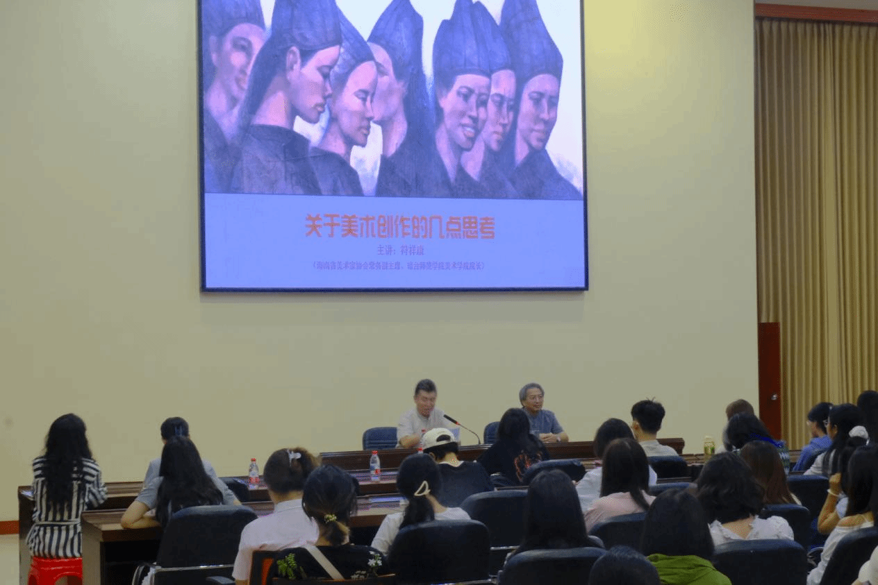 美术系举办“艺·思前沿”系列讲座。琼台师范学院院长、中国美术家协会会员、海南省美术家协会常务副主席符祥康教授以“关于美术创作的几点思考”为题与到场师生展开了深入交流。本次讲座由美术系责任教授包格日乐吐主持。