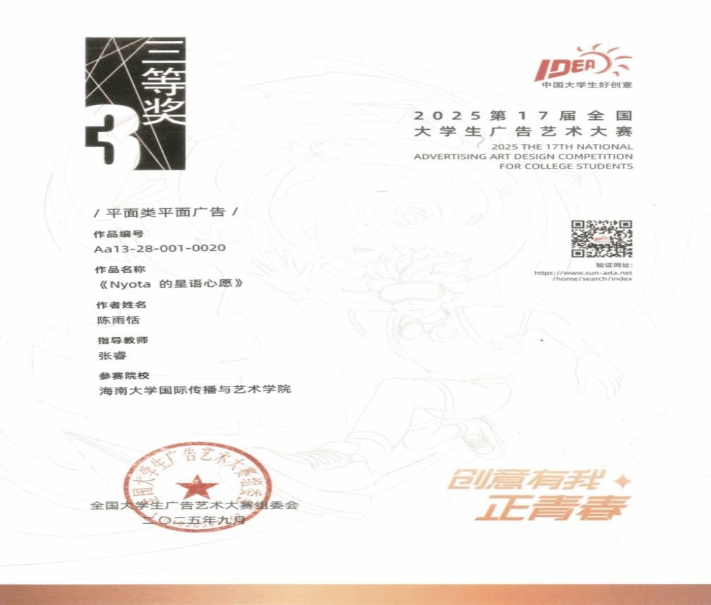2025年12月6日至7日,第17届全国大学生广告艺术大赛学科竞赛成果展示盛典暨全国大学生广告艺术大赛华彩20周年颁奖典礼在北京政协礼堂隆重举行。本届大赛吸引全国176万名学子参与,收到创意作品58万余组,夜月直播