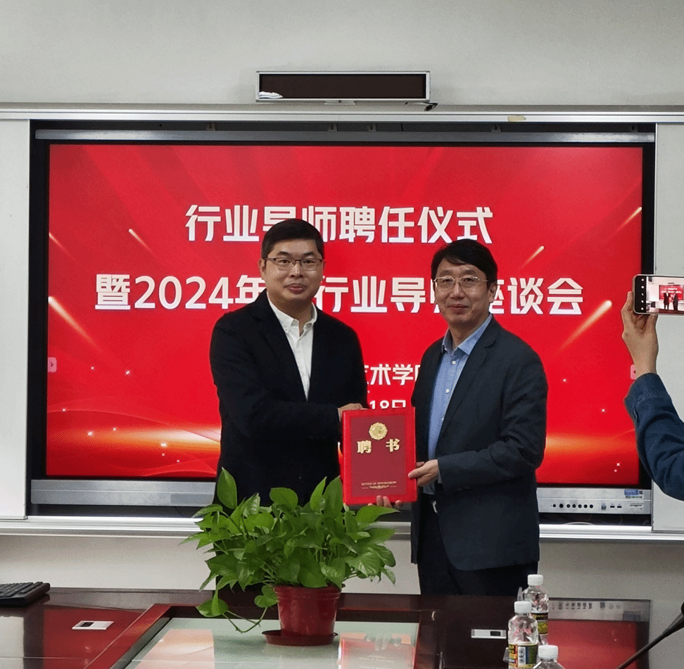 座谈会后,学院举办了行业导师聘任仪式。郑立波院长向行业导师颁发聘书,并表达了学院愿与行业导师一道,共同为学生成长助力的期望。