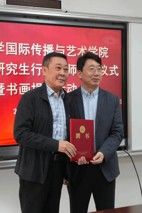 郑立波院长向省文联副主席、省美协主席阮江华颁发导师聘书