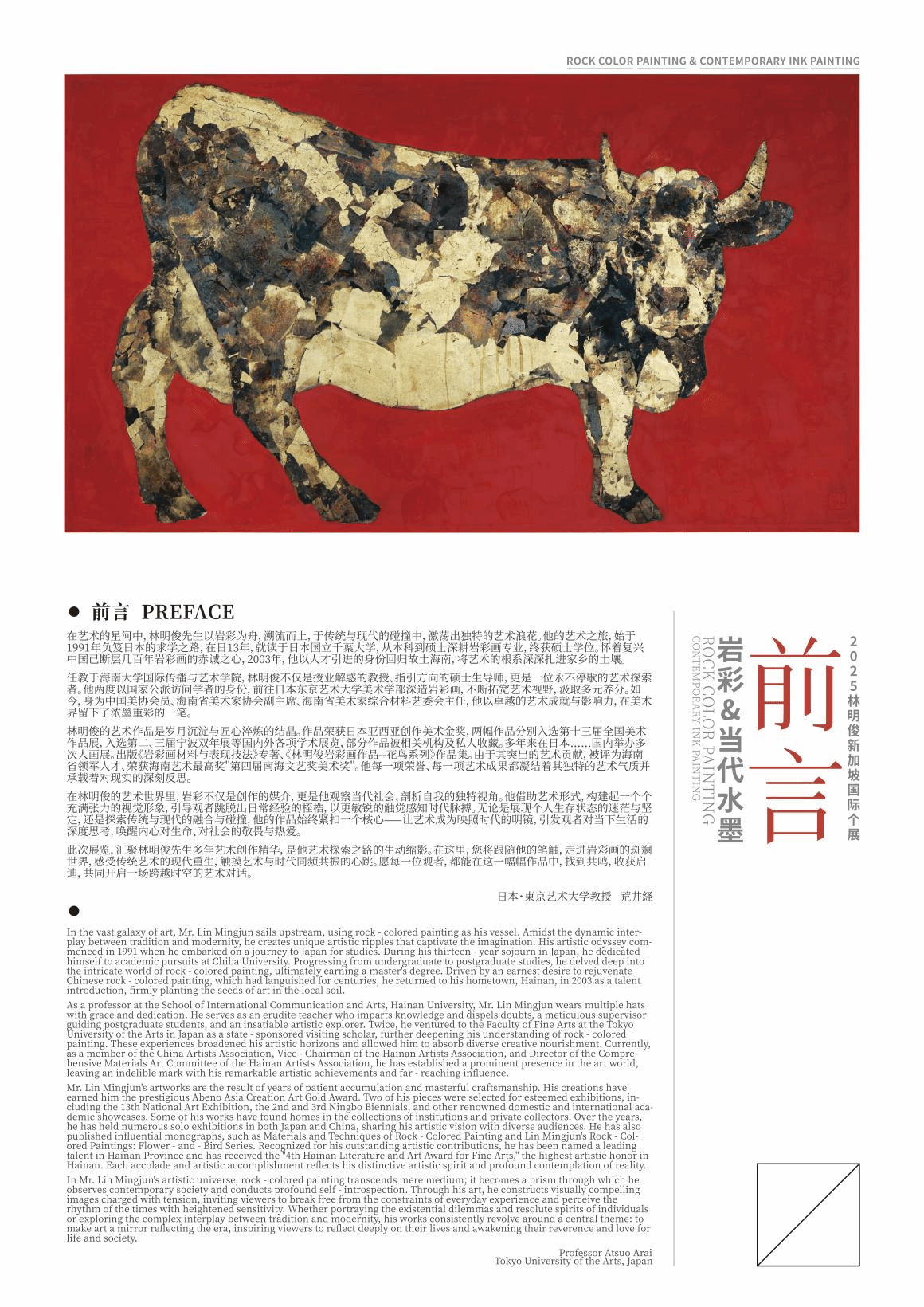 美术系林明俊教授国际个展《岩彩丹青——岩彩&当代水墨》,将在新加坡若轩艺术展示空间开展。