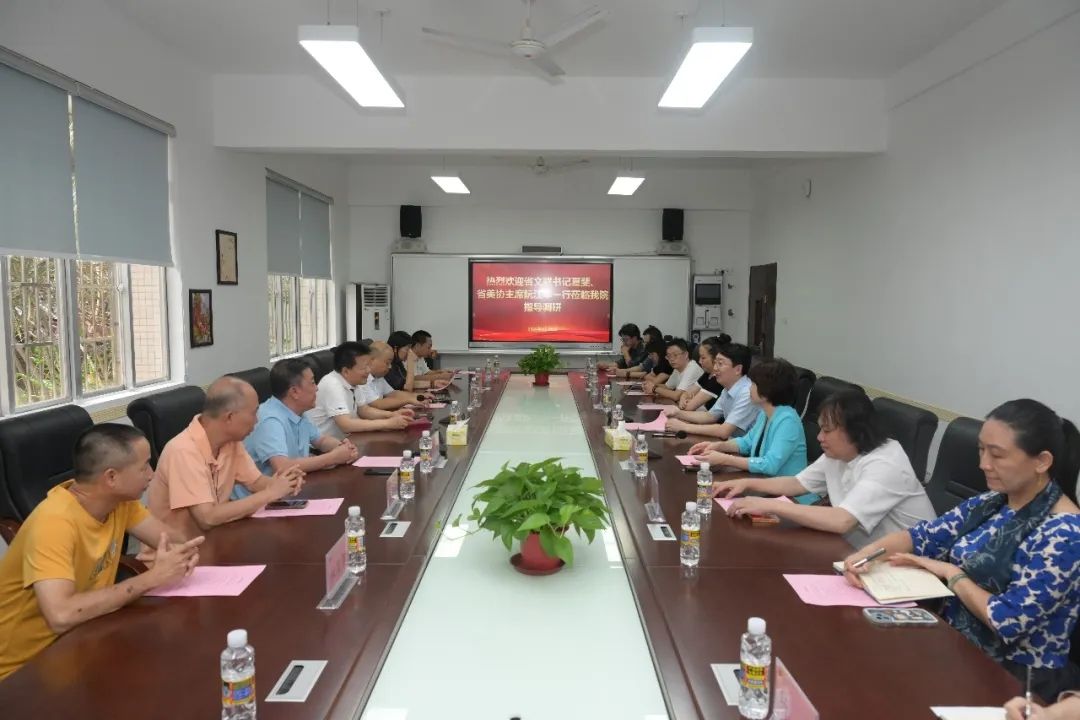 调研。观看2024届美术系本科毕业作品展,并与学院美术、音乐、舞蹈系艺术家代表座谈。学院党委书记何映敏、院长郑立波、副院长袁琳陪同。