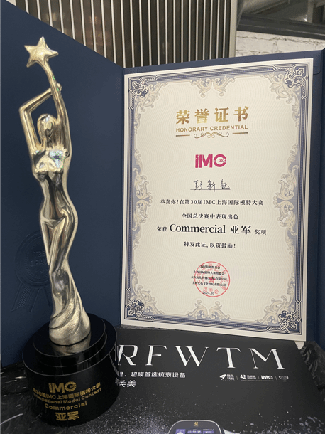 2021级服装表演专业彭新钰同学荣获“Commercial 亚军”称号。