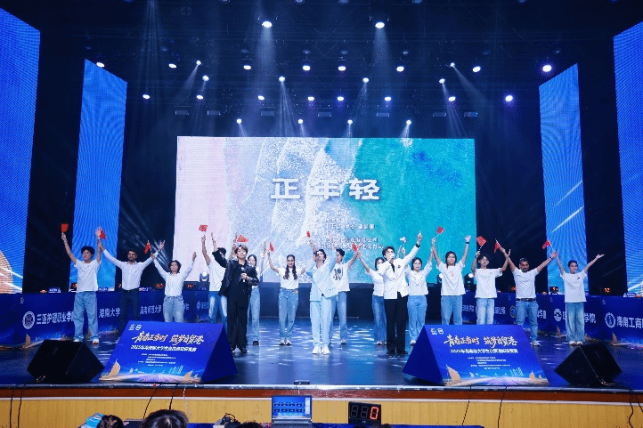 学子王玉忠、罗杰、潘胤佃以一曲原创歌曲《正年轻》惊艳亮相,用昂扬的艺术之声为自贸港建设注入澎湃的青春旋律。