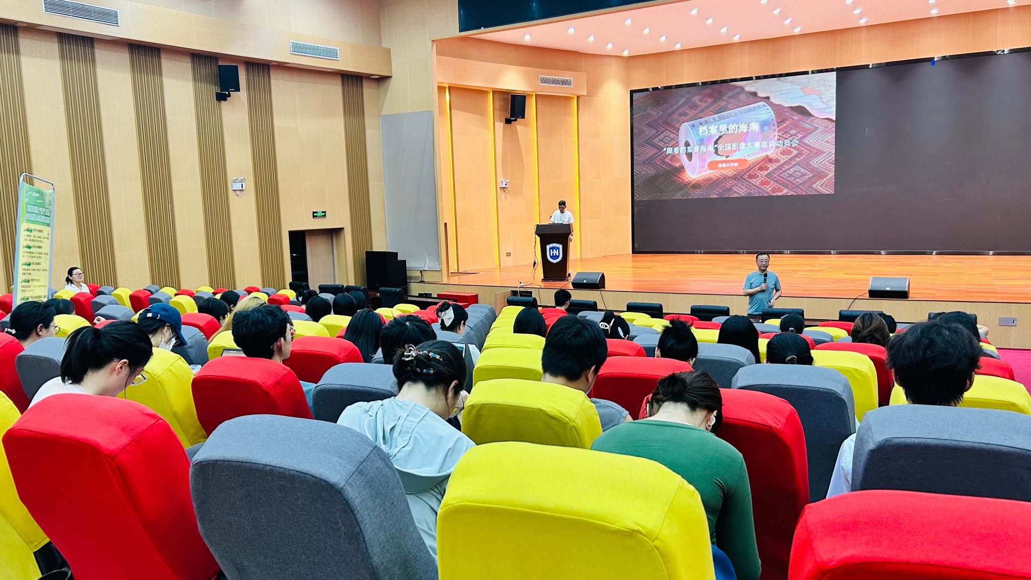 。“档案是一个全新的创作源泉。”作为主讲人,海南省影视家协会理事、纪录工厂(海南)传媒有限公司总导演王威与在场学子交流互动,并抛出问题:“当我们谈论档案时,我们在谈论什么?”
